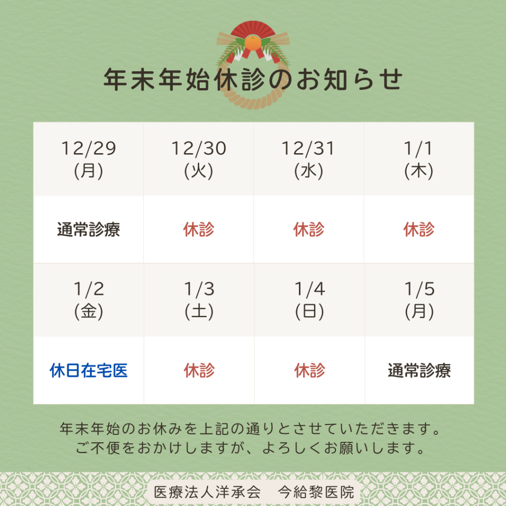 12/30(火)・12/31(水)・1/1(木)・1/3(土)・1/4(日)は年末年始のお休みとさせて頂きます。