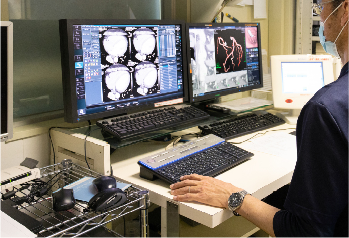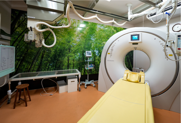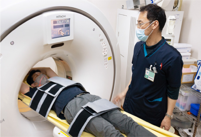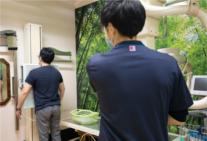 エックス線を用いて体の撮影をおこない、診断に必要な画像を提供しています。 レントゲン室で一般撮影やCT検査をおこなう他、救急外来・病棟でのポータブル装置、訪問先でのレントゲン撮影をおこなっています。 診療放射線技師2名で業務にあたっています。