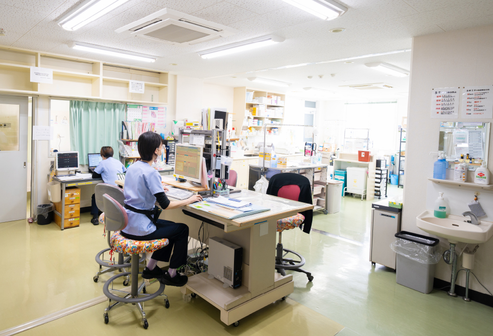 入院が必要になった患者様の診療の介助や身の回りのケア、退院までの支援など様々な事に関わらせていただきます。幅広い年齢層の看護師が現在14名、看護助手が5名在籍しており安心、安全を第一に患者様に寄り添う看護を目指しています。